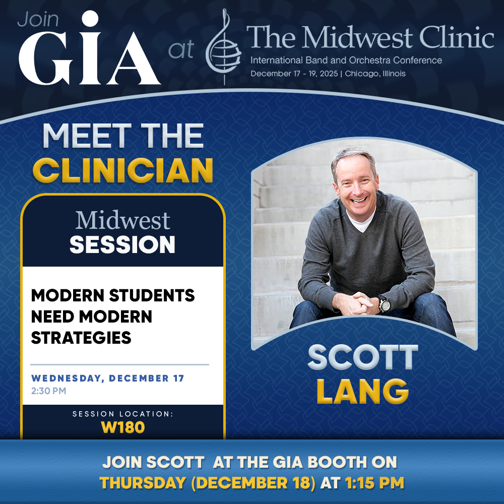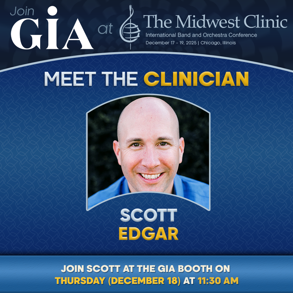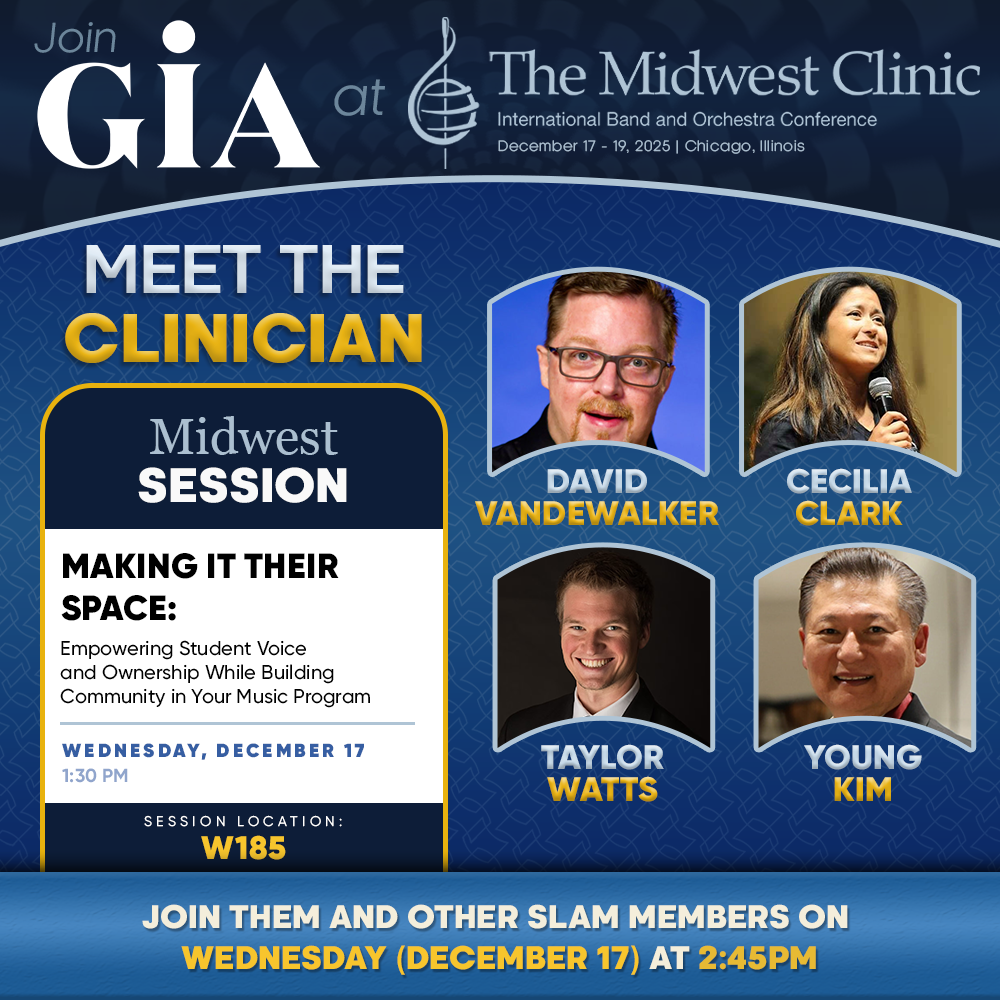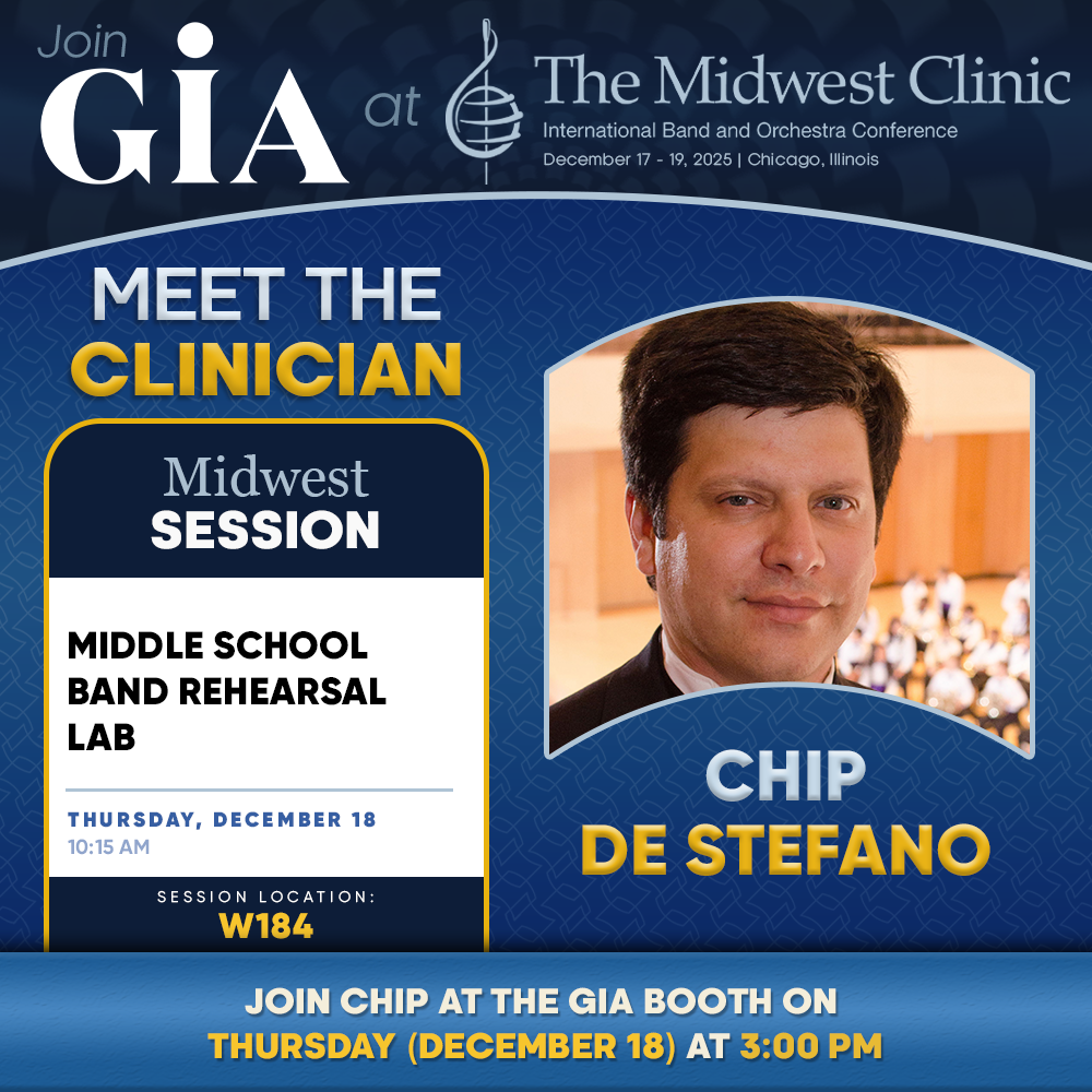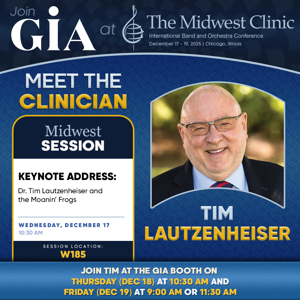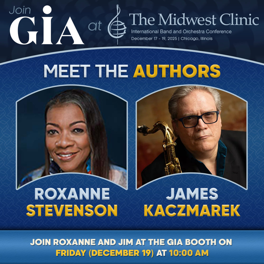 GIA is proud to support and sponsor an amazing vareity of music education professionals at this year's Midwest Band Clinc. If you plan on attending, be sure to stop by the GIA Booth to explore our new 2025 releases and for your chance to meet our clinicians. Dates and times for each session and meet-and-greet are listed below.
