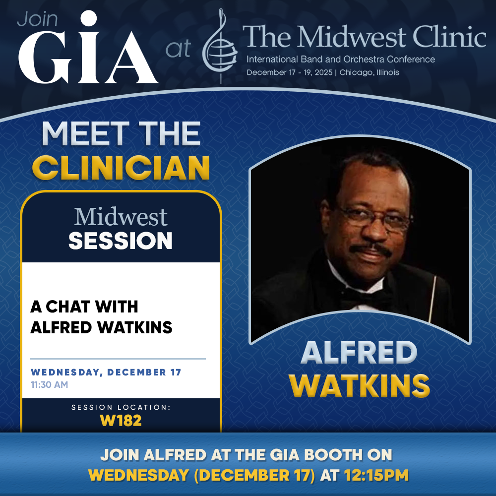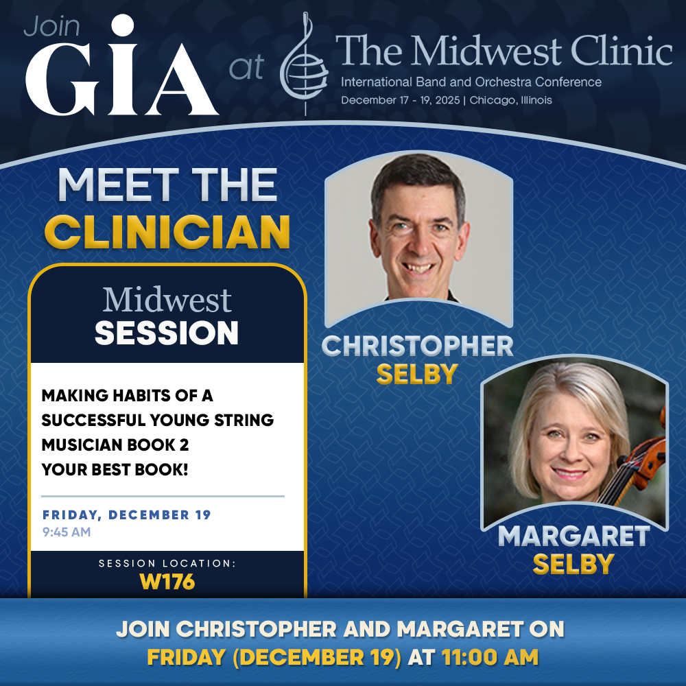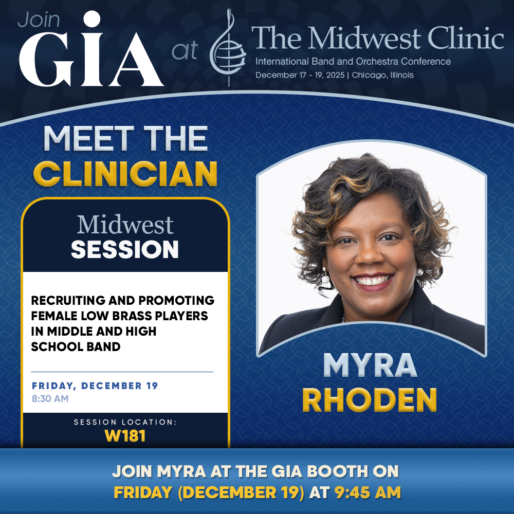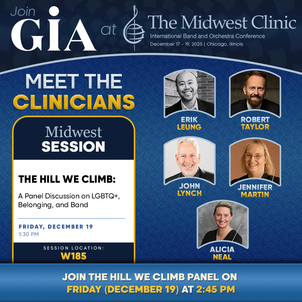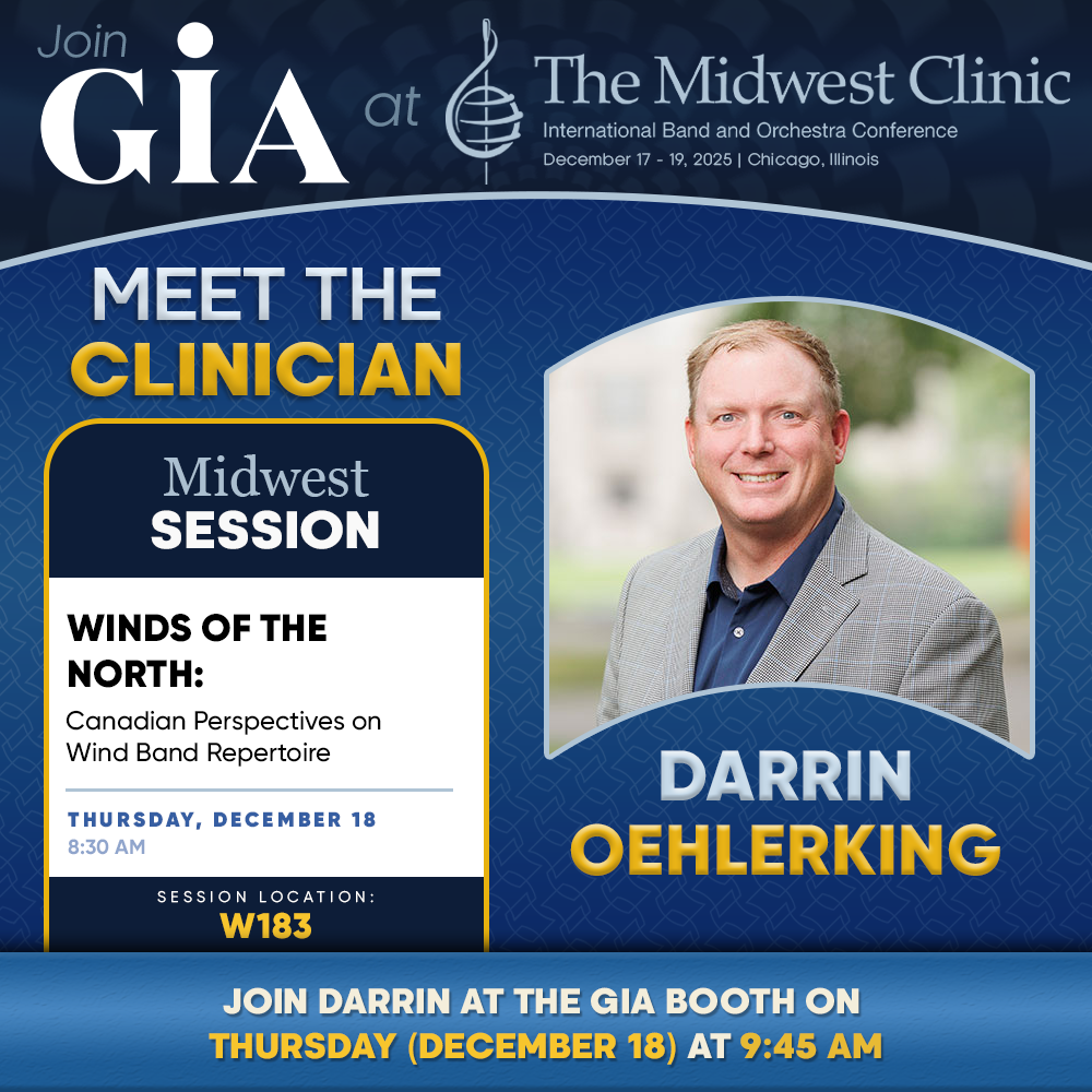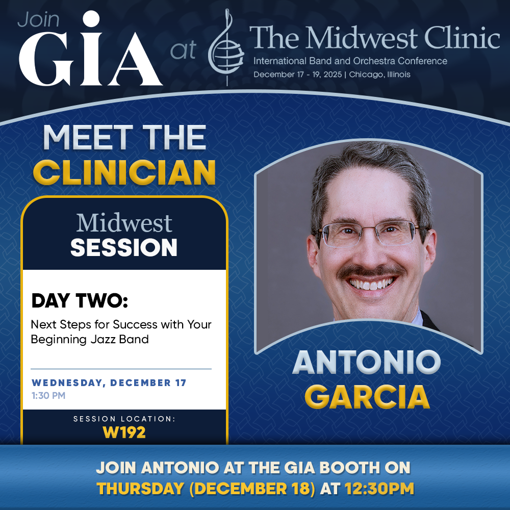 GIA is proud to support and sponsor an amazing vareity of music education professionals at this year's Midwest Band Clinc. If you plan on attending, be sure to stop by the GIA Booth to explore our new 2025 releases and for your chance to meet our clinicians. Dates and times for each session and meet-and-greet are listed below.