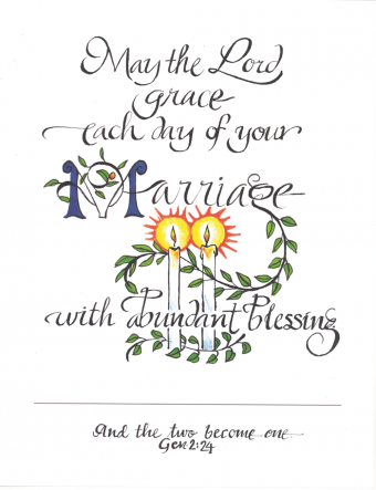 This is a frameable prayer of blessing is for newly married couples‚ those celebrating marriage anniversaries‚ or those who complete marriage preparation courses. 8.5 x 11